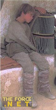 Anakin and his mother live on Tatooine in less than perfect conditions. The following is a picture of Anakin's bedroom on Tatooine, as shown on the official Episode I site (notice a certain astromech droid in the corner):