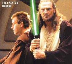 The Imperial Droid also said that Qui-Gon Jinn was Liam Neeson's character's name. But the Imp Droid went further and told us that the character is actually Anakin's father, as many people had speculated based on the similarities between the French Premiere photos and a scene from the first draft of Star Wars. Other of our sources say he ISN'T Anakin's father. We'll see.